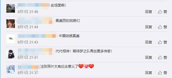 还有些网友看到这张照片后说:名场面!中国“梦之队”代代相传!