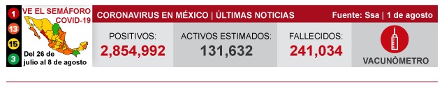 当地时间8月1日,墨西哥卫生部宣布,截至8月1日19时,墨西哥新增新冠肺炎确诊病例6740例,累计确诊2854992例;新增死亡病例128例,累计死亡241034例。(总台记者 盛嘉迪 吕兴林)