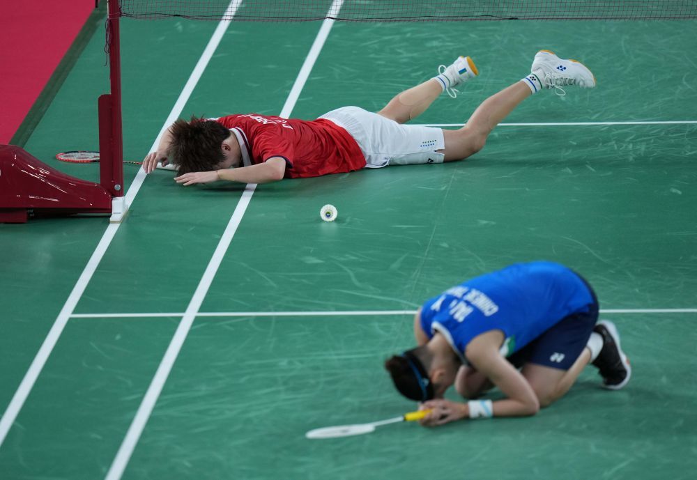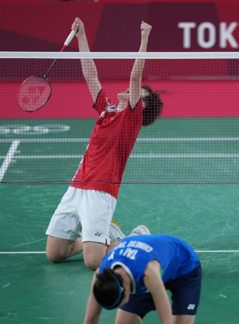 你来我往41拍后,第42拍世界排名第一的戴资颖放网前球落网,颓然跪倒,双手掩面;球网对面,本届奥运会头号种子陈雨菲整个人俯身趴在了地上……