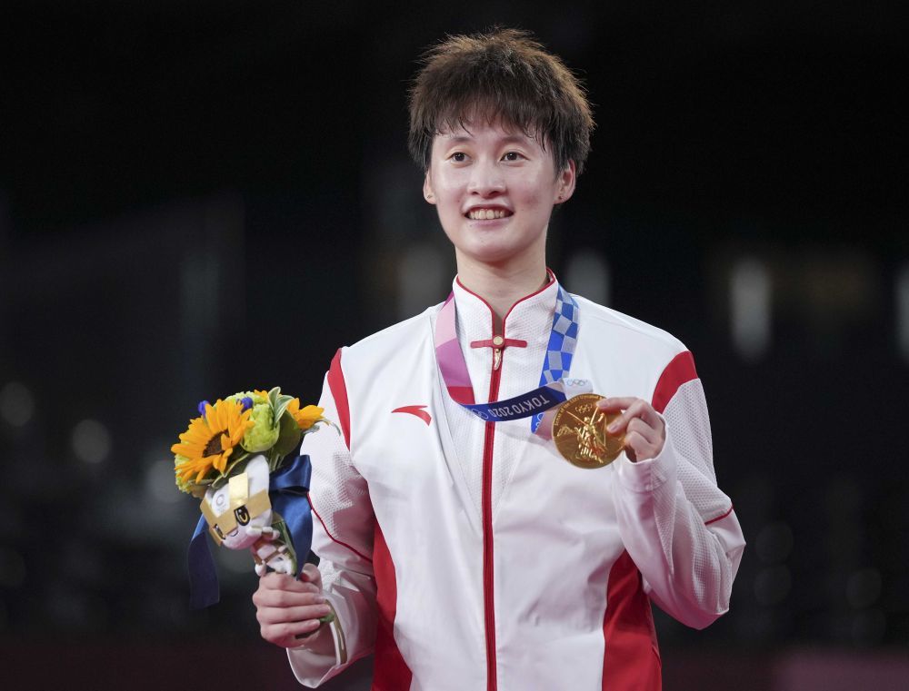 8月1日,陈雨菲在颁奖仪式上。新华社记者薛玉斌摄