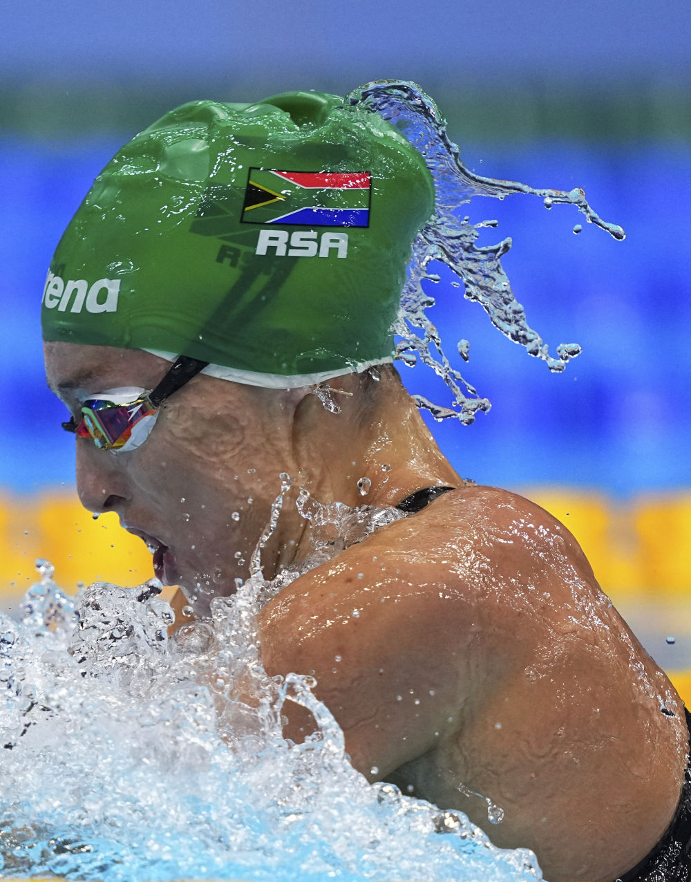 7月29日,南非选手舍恩马克在女子200米蛙泳半决赛中。