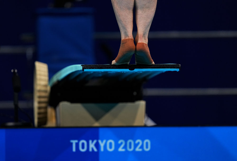 7月28日,中国选手谢思埸在男子双人三米跳板决赛中。