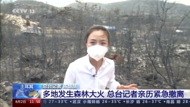 总台记者 陈慧慧:经过连日的扑救,安塔利亚大部分的森林大火都已经基本得到控制,但是在我身后的这座大山后面,浓烟四起的地方,现在还有一场大火正在被持续地扑灭当中。就在这场大火附近,大约1公里的地方有一个居民聚居点,现在当地民众正在被紧急疏散中。