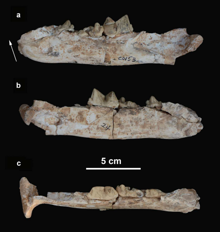 图为甘肃临夏盆地发现的隐匿剑齿虎下颌骨化石。(中科院古脊椎所供图)