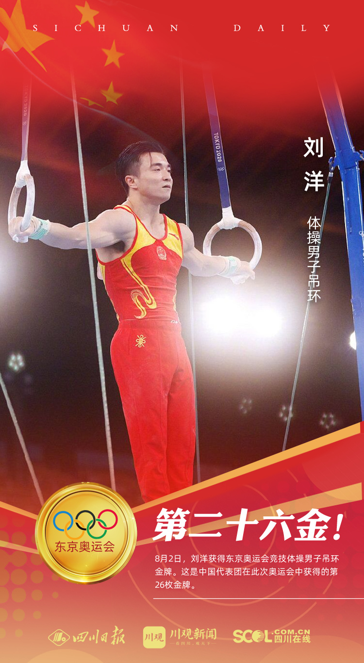 在东京奥运会体操男子吊环决赛中,刘洋以15.500分夺得金牌,尤浩以15.300分取得银牌。这是中国体操队在东京奥运会上的首枚金牌,更是继伦敦奥运会之后,9年来夺得的首枚奥运金牌!