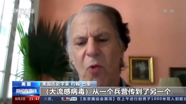 美国历史学家 约翰·巴里:(大流感病毒)从一个兵营传到了另一个,春季时,超过一半的军营已经被感染了,病毒也随他们到了欧洲,并进一步扩散开来。