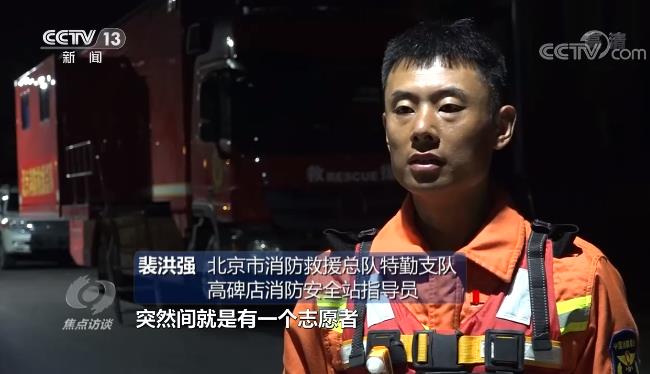 北京市消防救援总队特勤支队高碑店消防安全站指导员 裴洪强:我们当时刚执行完群众转移任务回来,正在休整期间,突然间有一个志愿者带着老人,老人过来时,着急忙慌,情绪特别激动。老人家有120只羊,已经两天两夜没有吃东西了,这些羊是老人家里唯一经济来源,他特别着急。