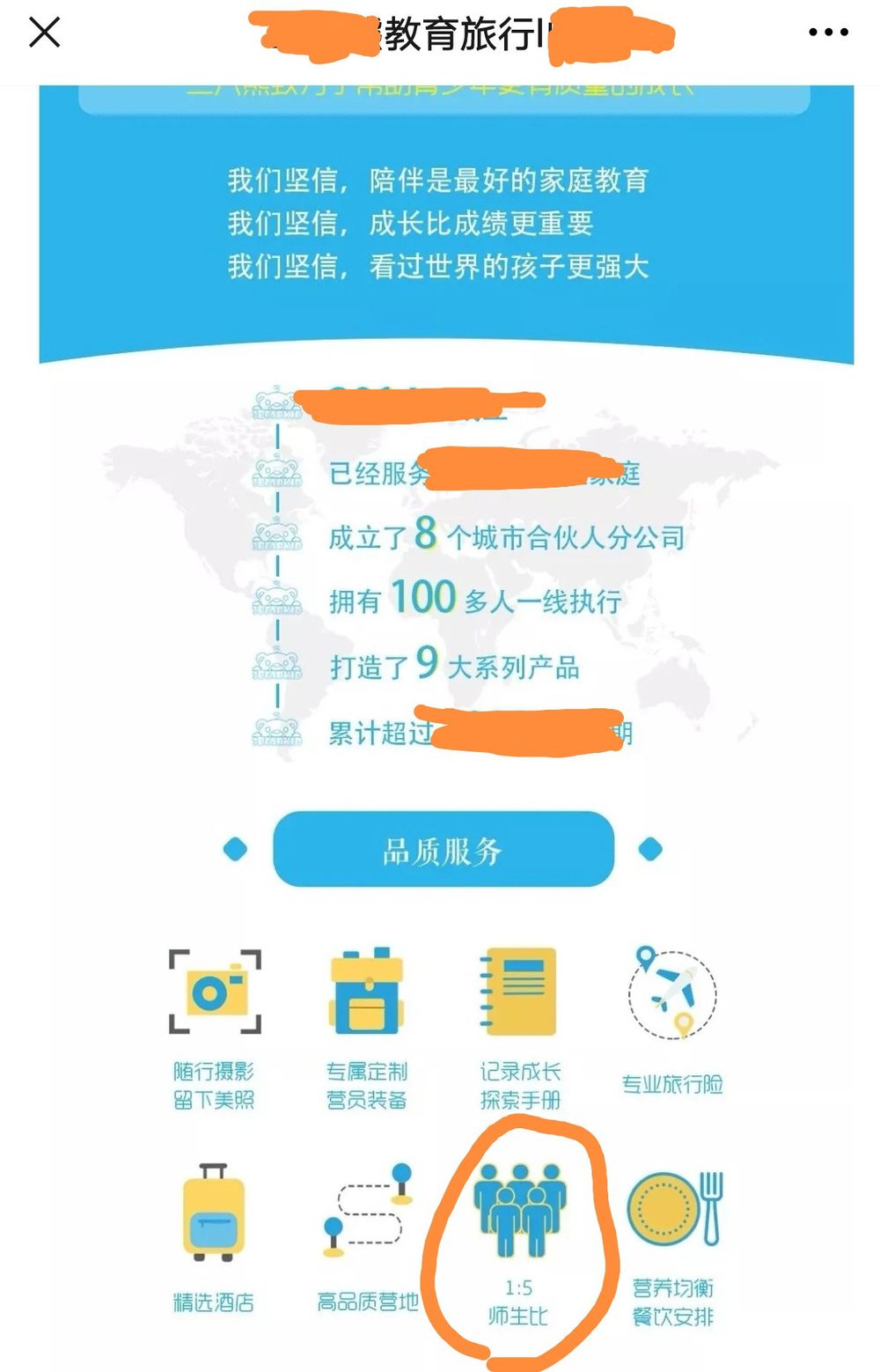 某夏令营组织机构在宣传页面注明了“师生比”,但部分组织机构并不注明。(来自手机截图)