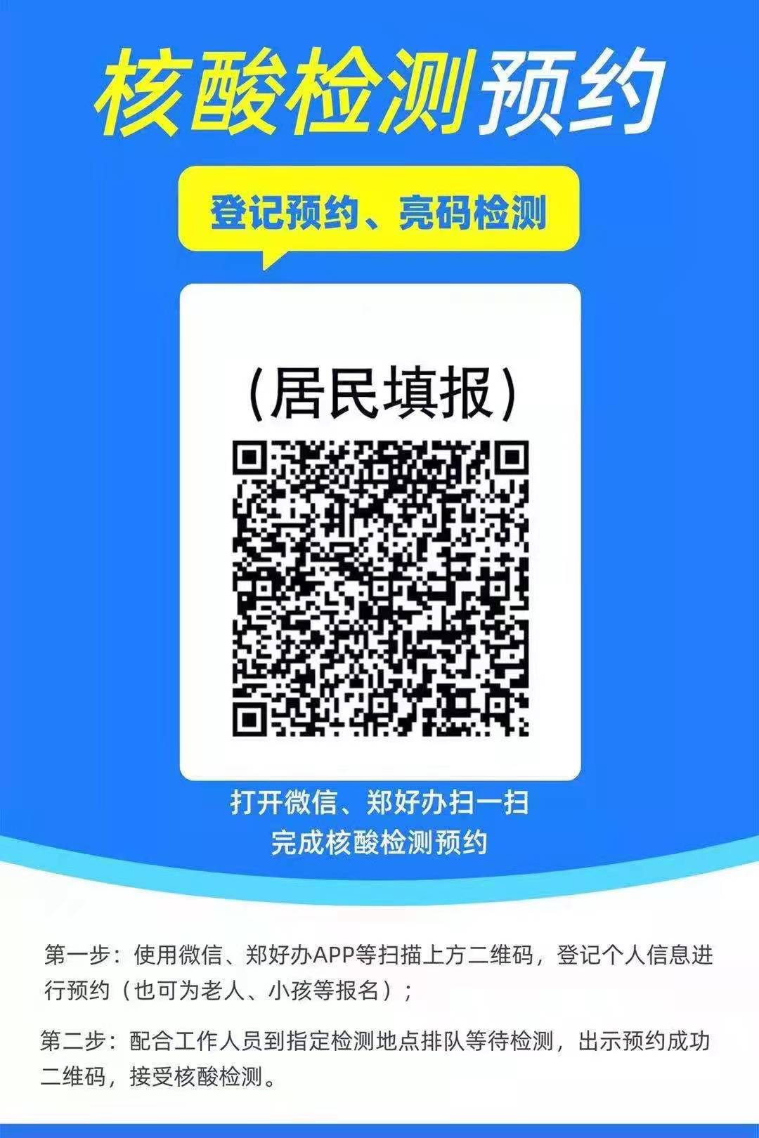 (二)检测前,市民朋友可通过“郑好办”公众号“核酸检测”菜单,或通过“郑好办”App、微信扫描图片中的二维码进行信息填报。该功能支持为他人代填,每个手机最多可填10人信息。请各位市民朋友检测时主动出示“预约成功二维码”。