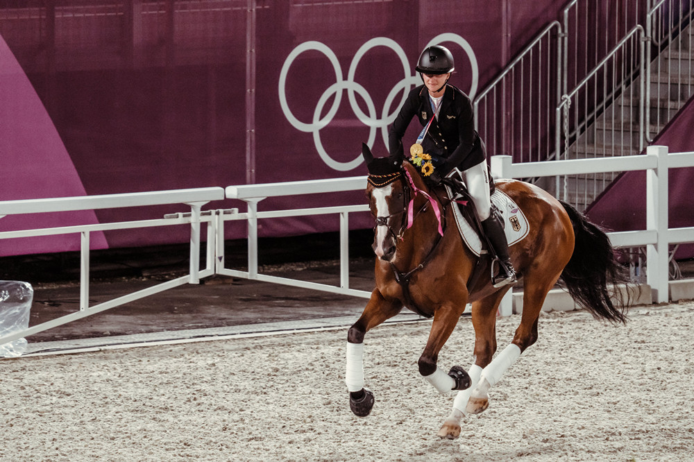 在当天晚上进行的个人决赛中,德国女骑手茱莉娅·克拉耶夫斯基与11岁的母马AMANDE DE B'NEVILLE获得冠军。她是奥运历史上第一位女性三项赛个人冠军。这位32岁的骑手在盛装舞步的赛段排名第四;在越野赛中仅遭遇0.4个时间罚分,排名升至第二;在今天的两轮障碍赛中,茱莉娅·克拉耶夫斯基在首轮以零罚分顺利完赛,第二轮则因为行进速度稍慢遭遇了0.4个时间罚分,将总成绩定格在26个罚分。德国女骑手在东京奥运收获两枚盛装舞步金牌之后,再添一金!