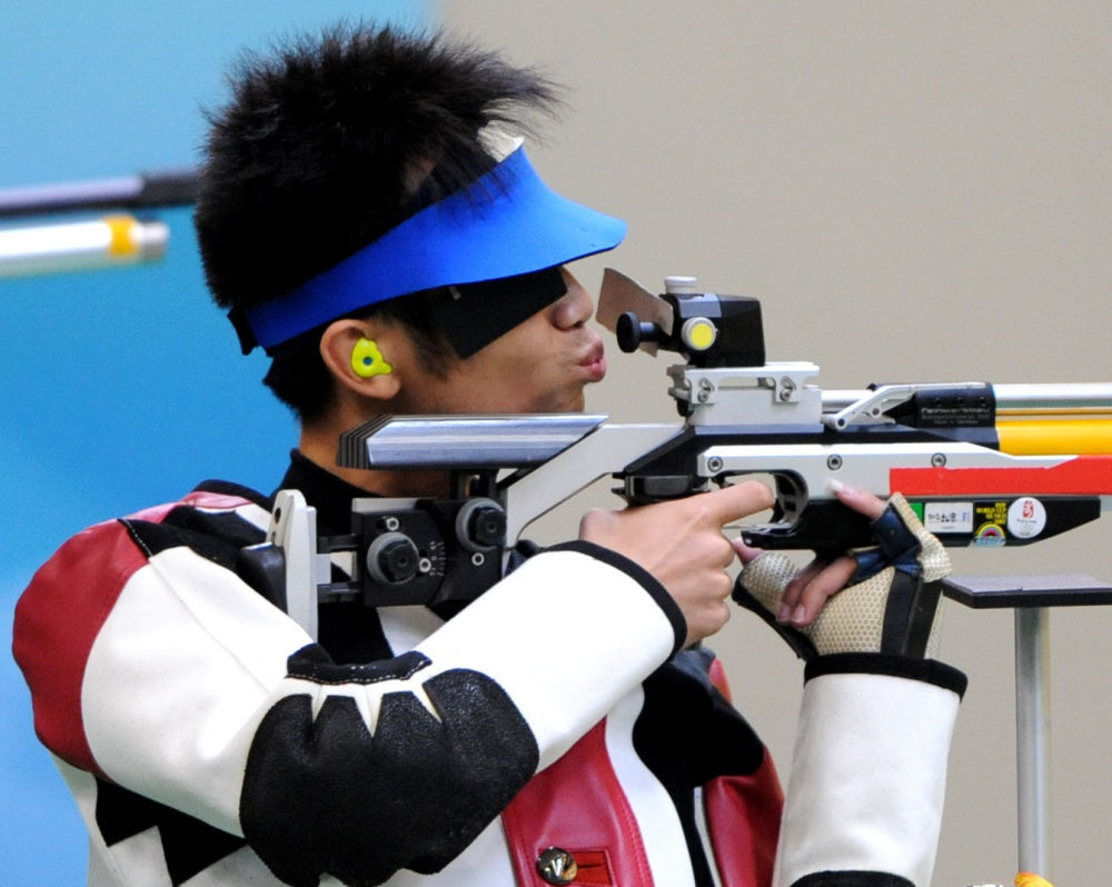 2008年8月11日,中国选手朱启南在北京奥运会男子10米气步枪决赛中。新华社记者李尕摄