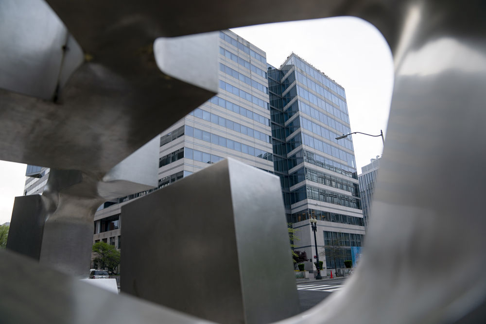 这是4月12日在美国华盛顿拍摄的国际货币基金组织总部。(新华社记者刘杰摄)