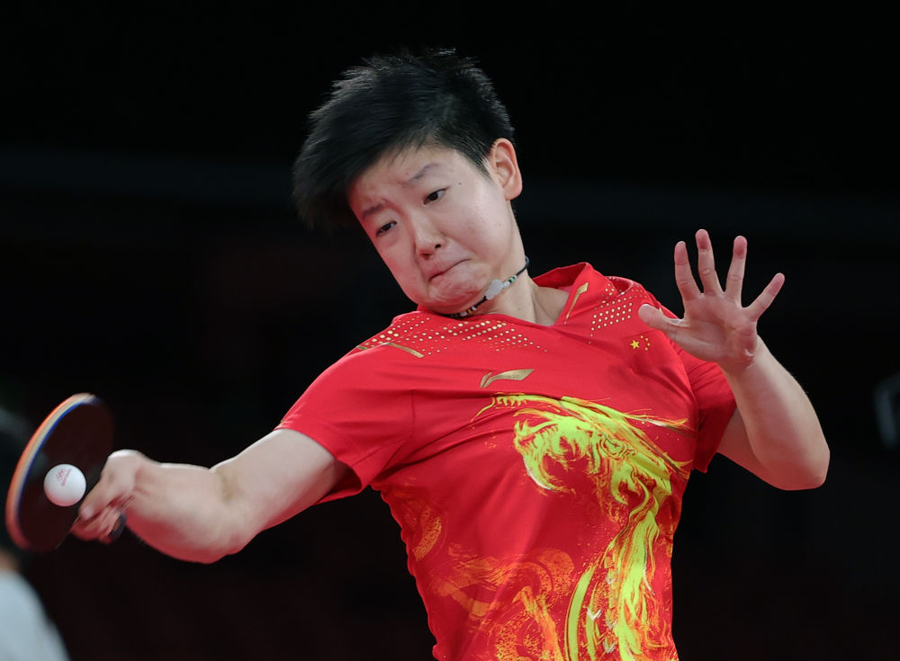 ↑ 中国队球员孙颖莎在比赛中。新华社记者 王东震 摄