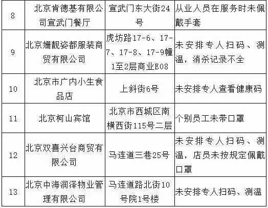 据北京市西城区微信公众号消息,北京西城区市场疫情防控执法督查组发布了《西城区关于对未按要求履行疫情防控主体责任市场主体的通报(第十七批)》,13家单位因未按要求履行疫情防控主体责任被通报。通报如下: