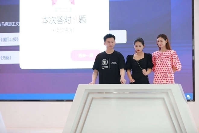 走进“学习之家”序厅,“学习强国”APP开机页面的巨幅画面映入眼帘,提示参观者即将开启学习之旅。街区结合学习强国“读书”频道打造了录音棚,市民可朗诵录制典籍,回味经典;在VR体验天地,市民可畅游祖国大好河山,沉浸式重温百年党史上的重大历史时刻。