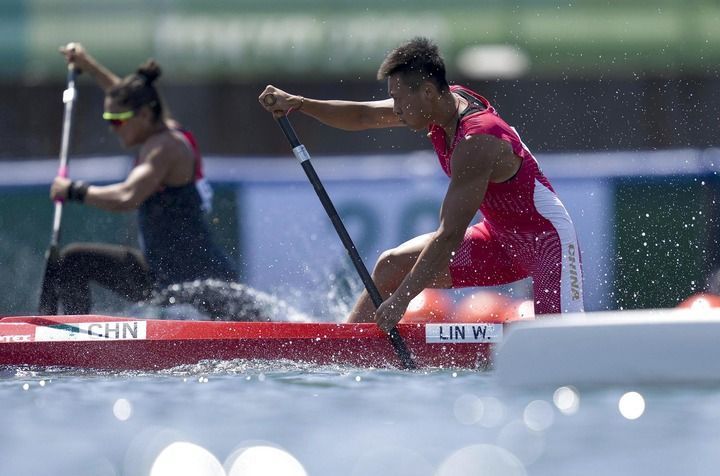 8月4日,中国选手林文君在女子单人划艇200米预赛中。新华社记者费茂华摄