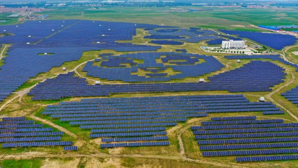 8月3日拍摄的“熊猫电站”(无人机照片)。位于山西省大同市云州区杜庄乡土井村的大同熊猫电站是以熊猫为造型的光伏电站。该电站建设在1851亩盐碱地上,年发电量达8000万千瓦时。
