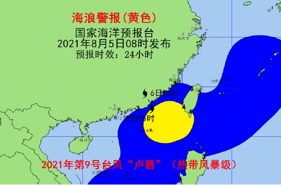 受“卢碧”影响,预计8月5日中午到6日中午,南海东北部、台湾海峡、巴士海峡、台湾以东洋面将出现3到5米的大浪到巨浪区;福建、广东东部近岸海域将出现2.5~3.8米的大浪,近岸海域海浪预警级别为黄色。