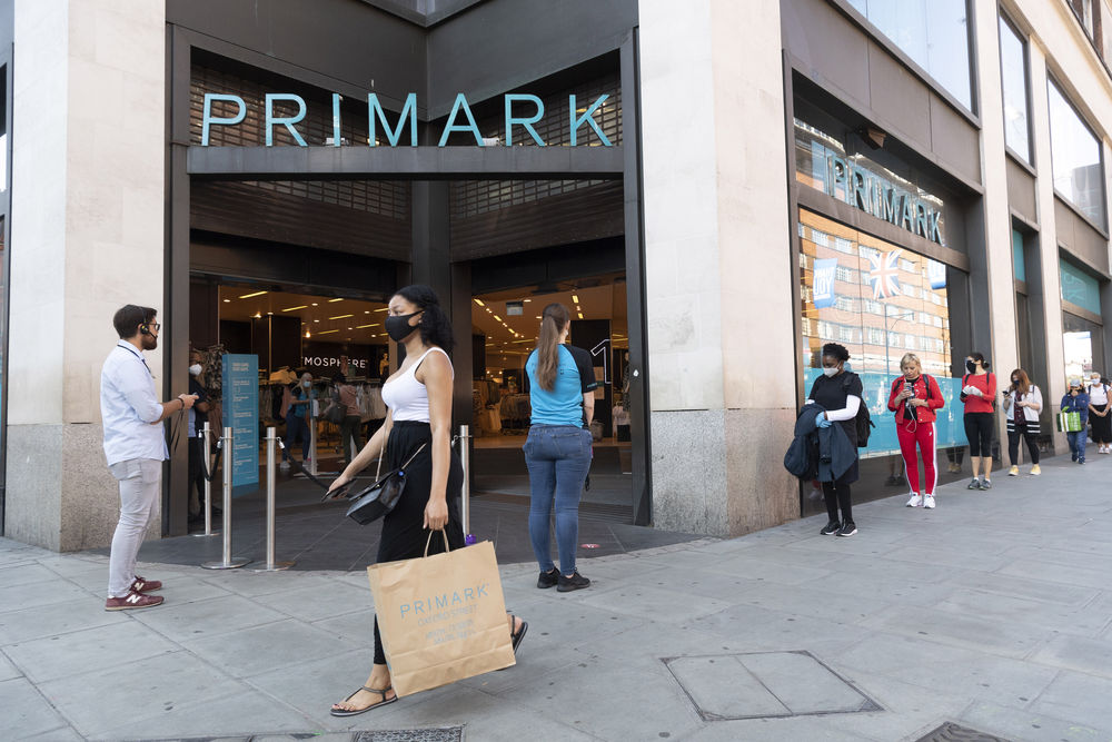 2020年6月15日,顾客在英国伦敦牛津街一家商店外排队等待。(新华社发,雷伊·唐摄)