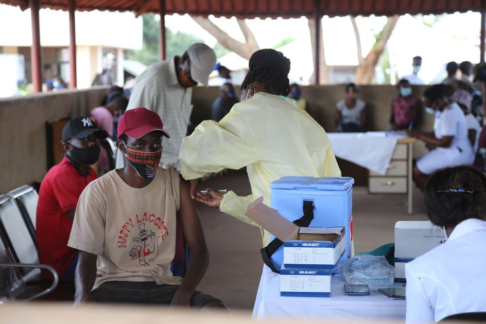 3月24日,一名男子在津巴布韦维多利亚瀑布城一家医院接种中国国药集团新冠疫苗。(新华社发,陈雅琴摄)