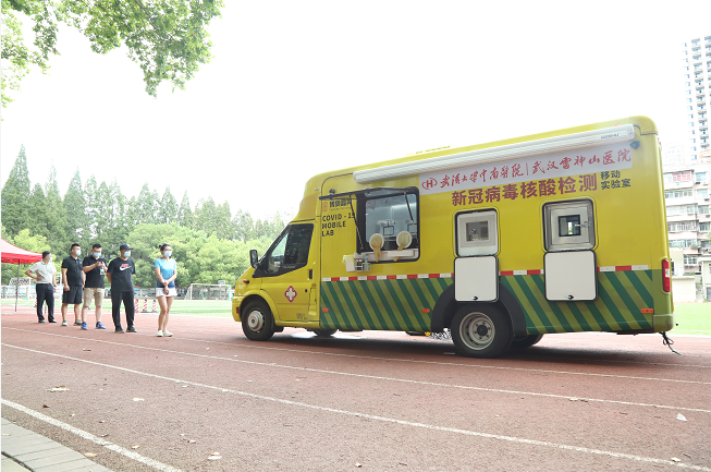 8月5日,湖北省首辆移动核酸检测车投入使用,为居民提供核酸检测服务。移动核酸检测车外形如同一辆轻型客车,内部搭载核酸咽拭子采样机器人、快速灭活仪和5G检测直报系统等全自动、便携式一体化新冠病毒核酸检测设备,通过人工+机械两种方式取样,在45分钟内就能得出核酸检测结果。