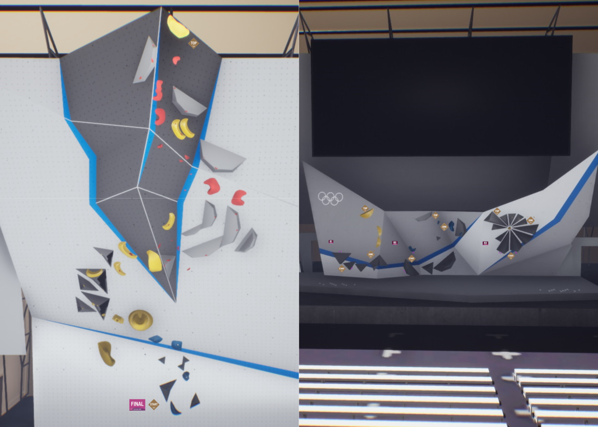 这是东京奥运会男子攀岩决赛难度(左)、攀石(右)线路的官方公告图纸。来自东京奥运会info系统