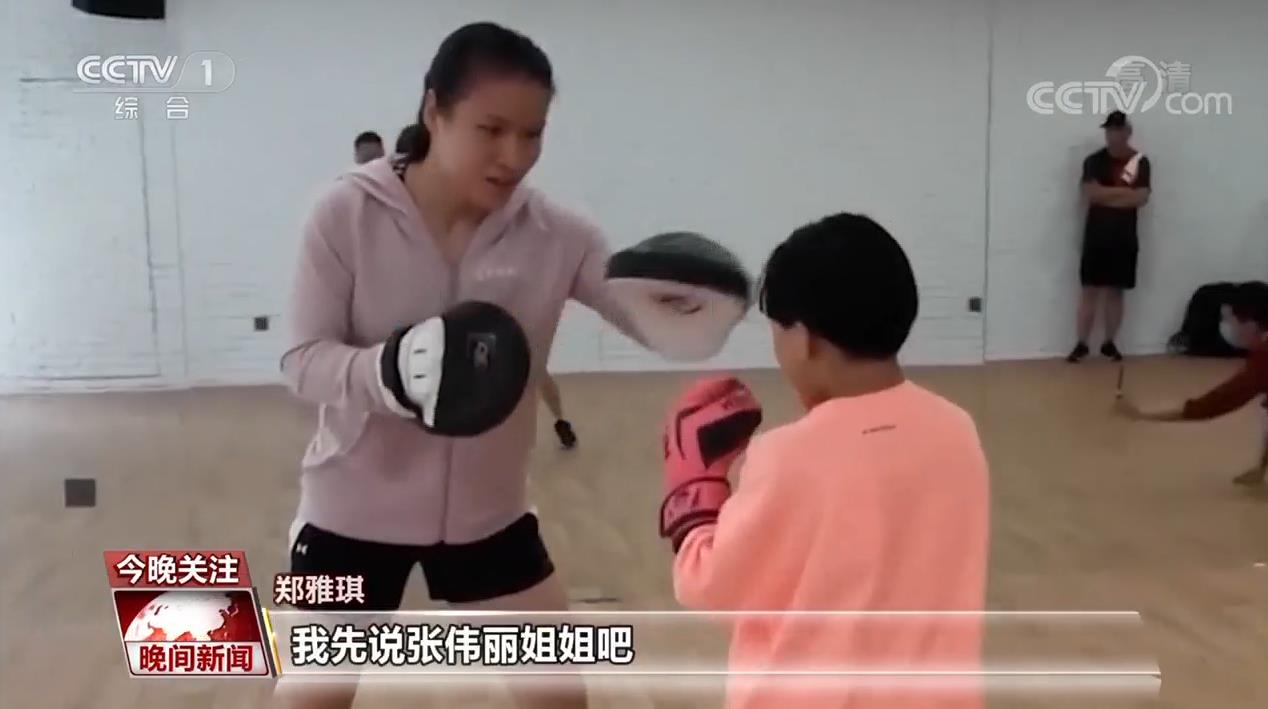 郑雅琪:我先说张伟丽姐姐吧,她教的方法是打一下,然后退出来,就这样快进快出嘛。徐灿哥哥他是教我防守做好,个子矮就要压,打一下就要防守回来。不管哪种方法,对我打拳练拳的路上都(有)很大的帮助,我非常感谢他们。