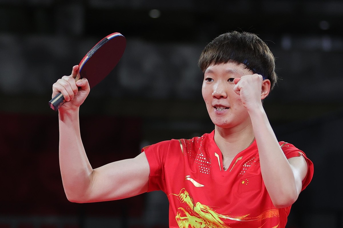 再次成功阻击伊藤美诚的孙颖莎说:“这个冠军送给中国,这枚金牌献给每一个为我们付出和送上鼓励的人,(中国乒协)刘国梁主席、李隼指导、黄海城教练,还有家人。最重要的是,我成长了很多。”