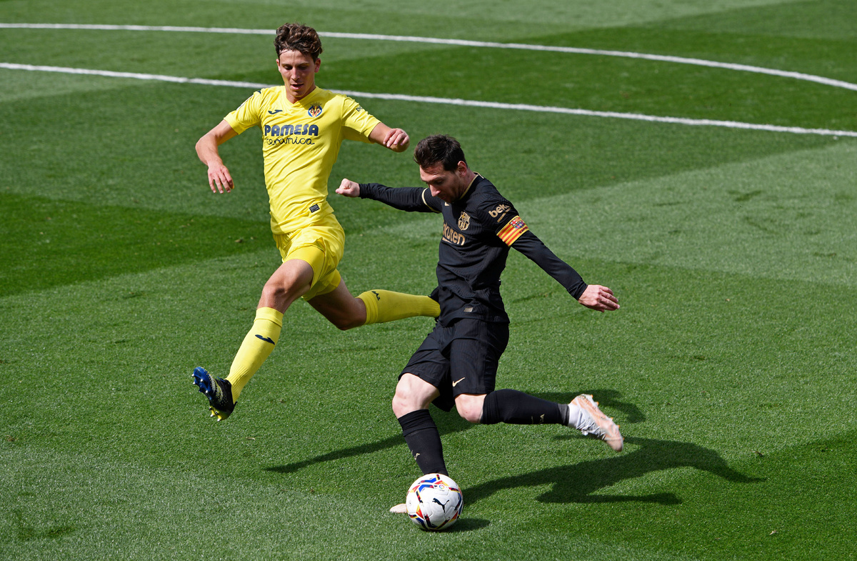 资料图:4月25日,梅西(右)在西甲联赛比赛中。