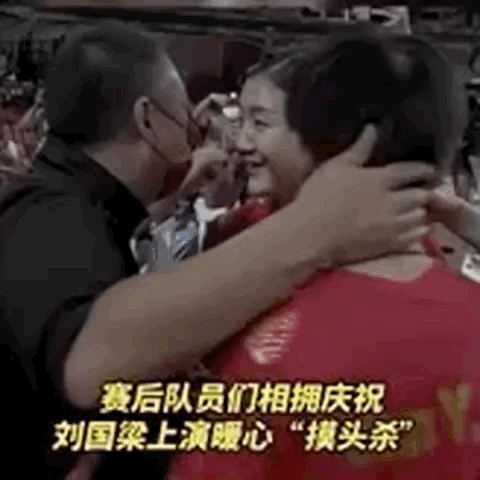 一起拥抱在观众席观战的刘国梁