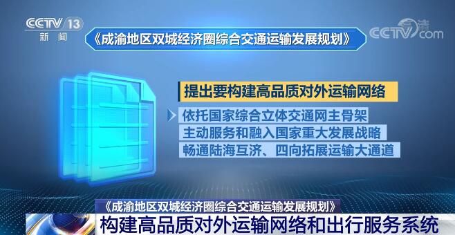 央视网消息:不久前,国家发展改革委、交通运输部联合印发了《成渝地区双城经济圈综合交通运输发展规划》。《规划》提出,要加快推动成渝地区双城经济圈综合交通运输体系高质量发展。