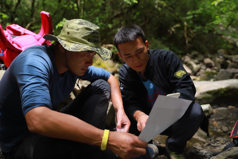2021年6月22日,刘勇(左)与队员在分析研判穿越路线。受访者供图