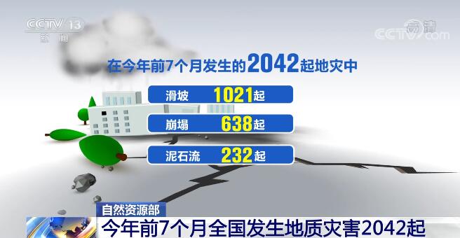 据了解,在今年前7个月发生的2042起地质灾害中,其中滑坡1021起、崩塌638起、泥石流232起。自然资源部表示,根据地质灾害多年发生规律,8月份将仍处于地质灾害的高发期。华北地区的北京、河北、山西,东北地区的辽宁、吉林,华东地区的浙江、安徽,中南地区的河南、湖北、湖南等省(区、市)部分地区发生地质灾害的可能性较大。