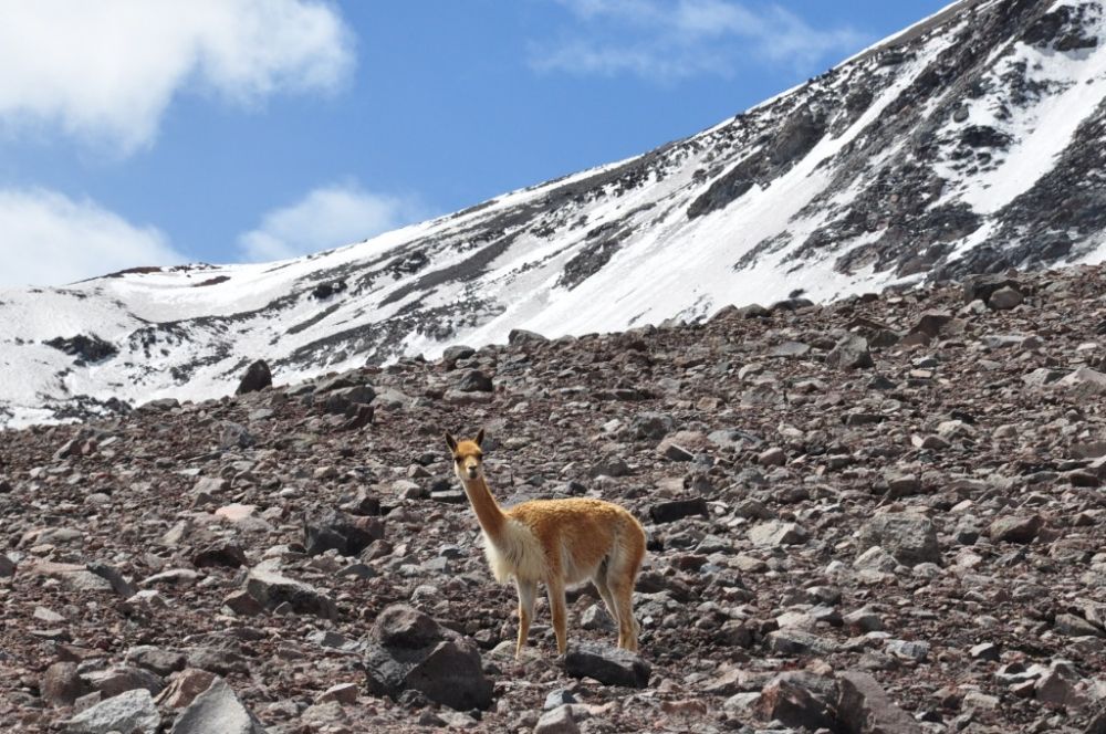 2014年6月29日在厄瓜多尔拍摄的生活在钦博拉索峰的小羊驼。(新华社记者梁君茜摄)