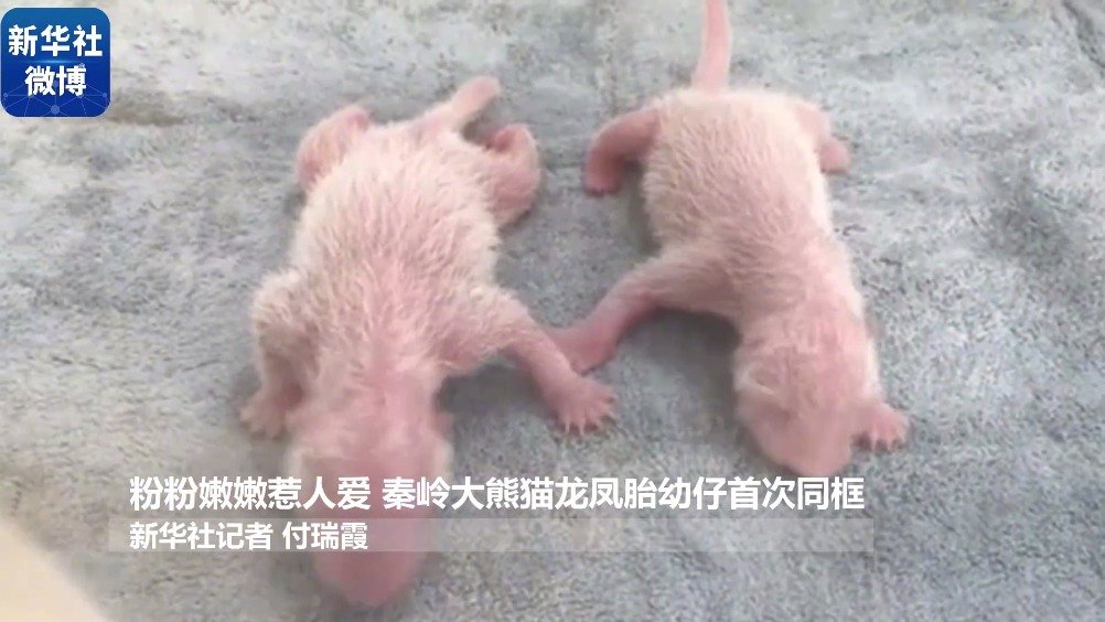 【粉粉嫩嫩惹人爱 #秦岭大熊猫龙凤胎幼仔首次同框#】秦岭大熊猫研究中心的大熊猫“丫丫”7月31日诞下龙凤胎幼仔,雌性、雄性幼仔的初生体重分别为137克和110克。截至目前,双胞胎发育良好。秦岭大熊猫是中国大熊猫的一个亚种,主要分布在陕西省的秦岭地区。(记者付瑞霞) 新华社的微博视频
