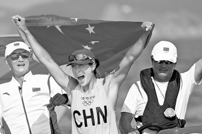 在东京奥运会女子帆板RS:X级比赛中,中国选手卢云秀获得冠军。新华社发