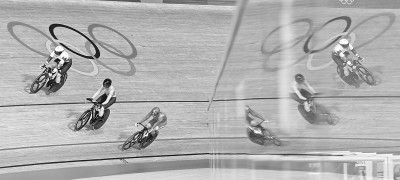 参赛选手在场地自行车项目比赛中激烈角逐。新华社发