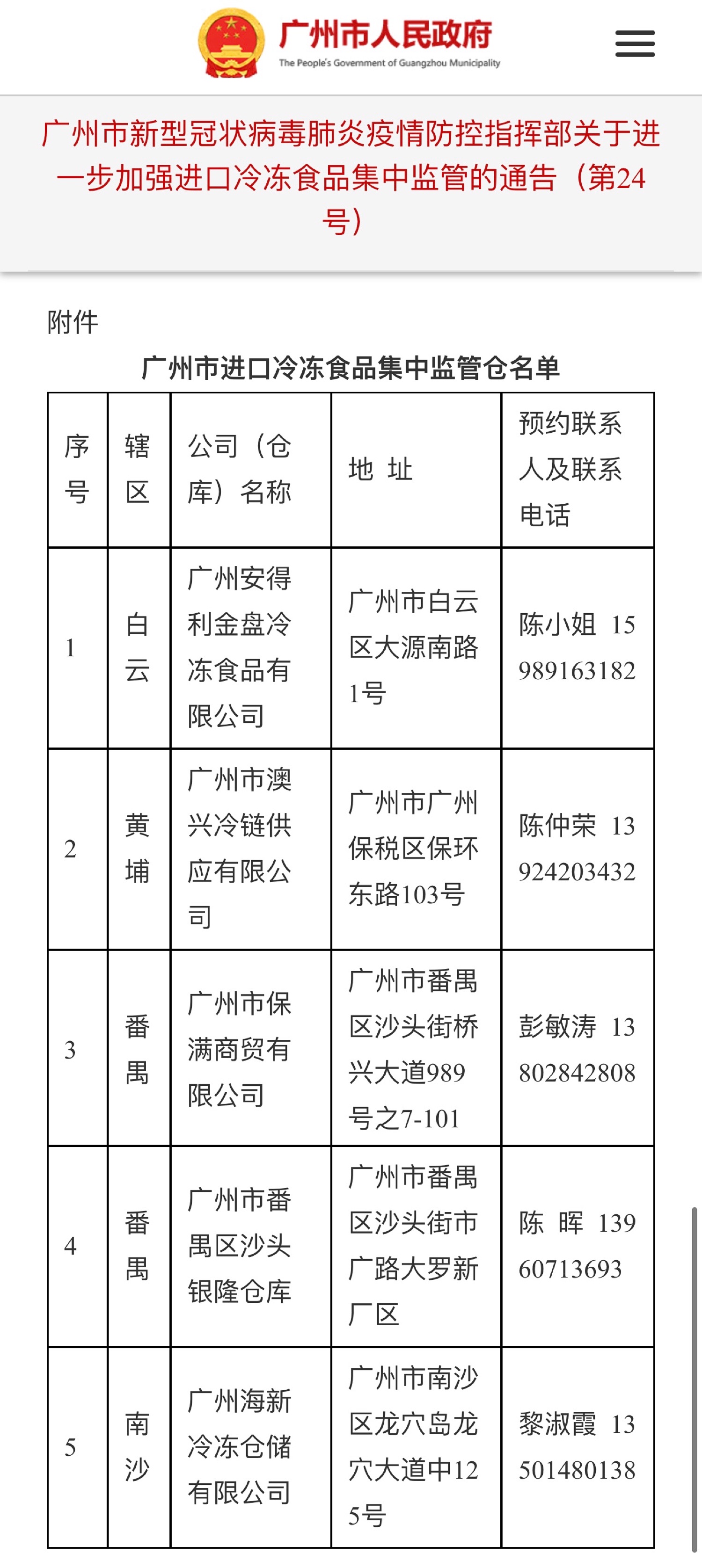 为落实“人物同防”要求,进一步强化进口冷冻食品集中监管,筑牢外防输入防线。依据《中华人民共和国传染病防治法》《广州市人民代表大会常务委员会关于依法全力做好新冠肺炎疫情防控工作的决定》等有关规定,现就广州市进一步强化进口冷冻食品集中监管闭环管理有关措施通告如下: