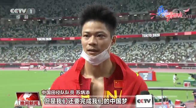 中国田径队队员 苏炳添:对我来说,现在完成了一个小小的梦想,但是我们还要完成我们的中国梦,就希望在东京奥运会赛场上扬起我们中国的国旗。