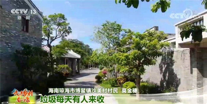 海南琼海市博鳌镇沙美村村民 莫金穗:以前没有路灯,现在也有路灯了。村子也变得很整洁,垃圾每天有人来收,管理变得更规范了,景色变美了。