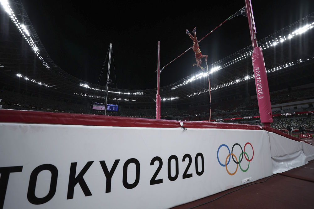 8月5日,中国选手徐惠琴在东京奥运会女子撑杆跳高决赛中。