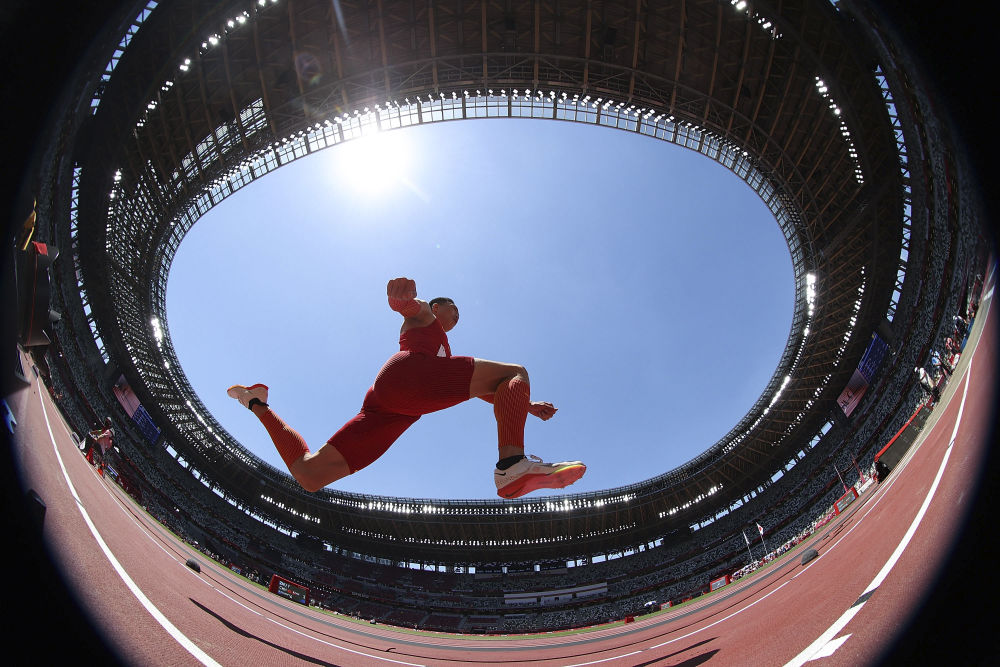 8月5日,中国选手朱亚明在东京奥运会田径男子三级跳决赛中获得银牌。