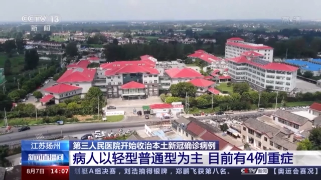 总台记者 杨光:在我身后是扬州市第三人民医院,远处的6号楼是目前扬州本土新增确诊病例的专用收治楼,总共6层,里边有222个专用床位,其中16个是重症ICU的床位。