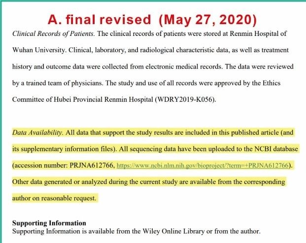 这名专家表示,为研发新冠病毒检测新技术,他所在的科研团队分别于2020年1月底和2月中旬采集两批新冠患者样本进行分析。该团队后将研究成果投稿至一家西方学术期刊。为满足投稿要求,该团队将实验相关数据上传至美国国立卫生研究院管理的NCBI数据库,并在论文草稿中专门撰写了一段内容,详细注明了在数据库里如何访问和获取其数据。