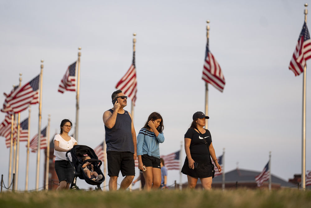 8月6日,人们在美国首都华盛顿的华盛顿纪念碑附近游览。(新华社记者刘杰摄)