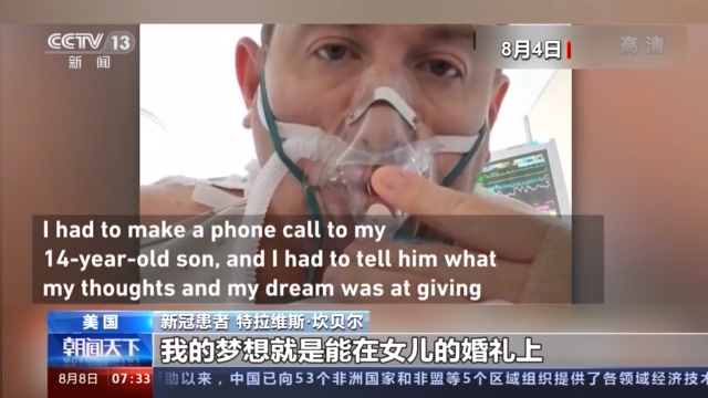 美国新冠患者 特拉维斯·坎贝尔(8月4日):我要给我14岁的儿子打电话,告诉他,我的梦想就是能在女儿的婚礼上,亲手将女儿托付给另一个人。我需要征得我儿子的同意,如果我不能回家,那么他就要在我女儿的婚礼上扮演这一角色。