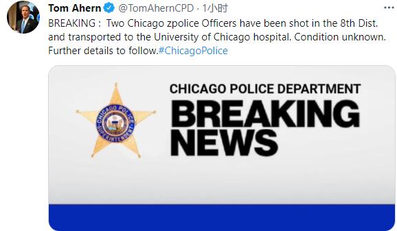 警方发言人汤姆·埃亨(Tom Ahern)称,两名受伤警员已被送至芝加哥大学医学中心,目前情况不详。