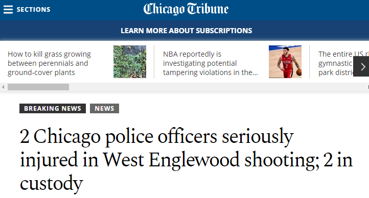 另据《芝加哥论坛报》报道,截至目前,两名受伤警员情况危急,警方已逮捕两名嫌疑人。