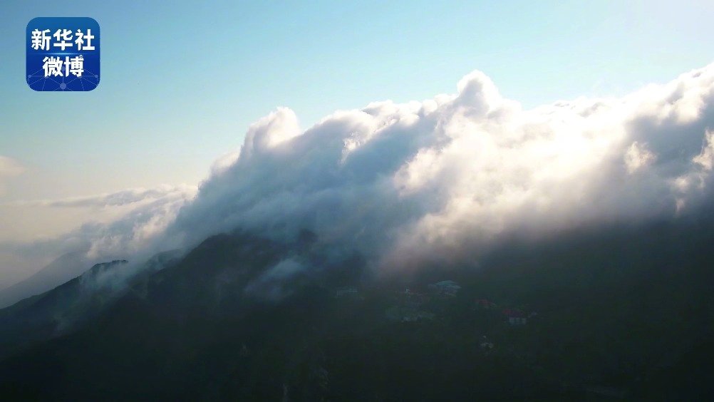 #庐山现瀑布云海#【江西庐山:山外有山 云外有云】近日,庐山小天池出现瀑布云海,呈现出“磅礴云涛天际来,奔流向前不复回”的壮观景象。云雾笼罩下的牯岭城晴翠烟岚,恰似人间仙境。更为奇特的是,庐山云海万千变幻,沿着屋脊岭、大月山山峰,云雾如水墨画般舒卷铺陈开来,颇有“冠顶彤云飞,一泻倾山城”之势。薄雾轻纱弥漫山峦间,小天池云海还变幻出瀑布雾的奇特景观。 新华社的微博视频