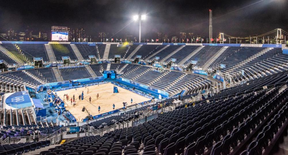 7月27日,奥运会女子沙滩排球小组赛中,中国队对阵巴西队。坐在看台上,我看着不远处灯火通明的东京湾大桥和东京夜景,空空荡荡的赛场成了这一届奥运会独特的印记。